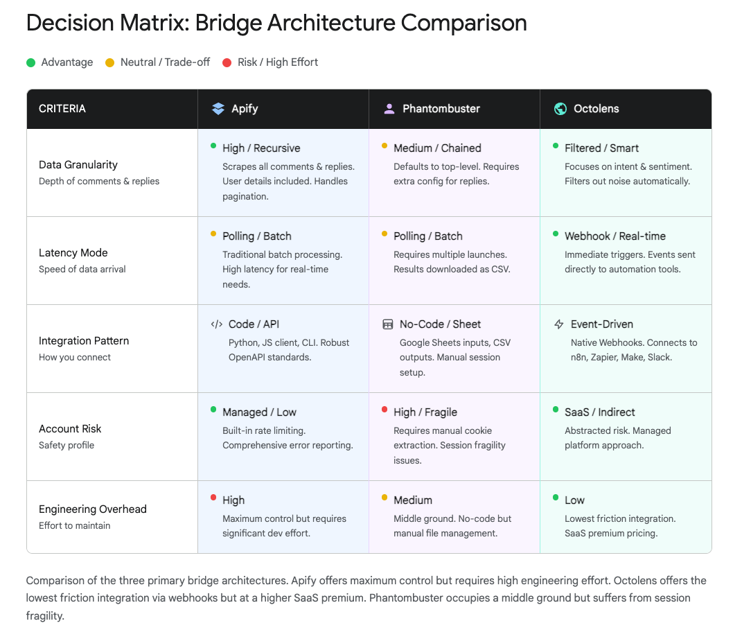 - Variable Costs: You pay for compute time. Deep scrapes on viral posts can consume massive resources, making costs harder to predict.