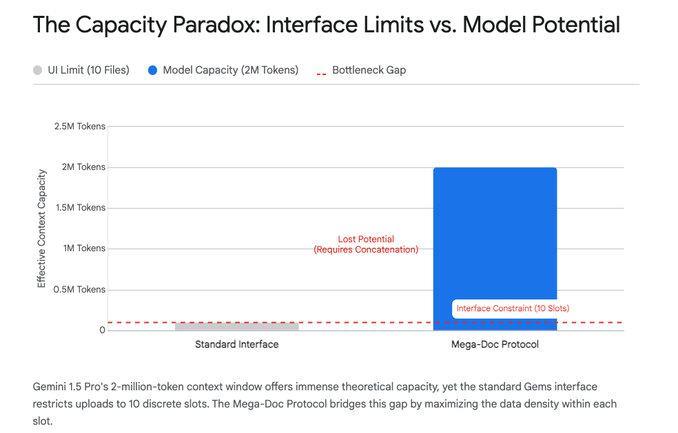 - The "Context Slicing" Defense: Recent updates to the Gemini 3 consumer web app have introduced aggressive "context slicing" to save compute—sometimes causing the model to "forget" uploaded files after 10+ turns of conversation. A Mega-Doc forces the model to treat your data as a single, indivisible block of context, preventing this data loss.